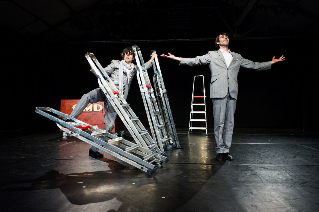 Est-ce que vous imaginez tout ce qu’un être humain peut faire de surprenant et d’inconcevable avec de simples escabelles ? Doble Mandoble vous montrera comment transformer une simple escabelle en un merveilleux accessoire de danse et d’acrobatie de rue dans une performance corporelle dans lequel deux personnages font jouer de simples objets du quotidien avec humour et élégance, en rendant un hommage délirant à l’escabelle pliable de nos maisons. Après ce numéro mêlant acrobatie et équilibre, vous ne verrez plus jamais votre escabelle de la même manière !